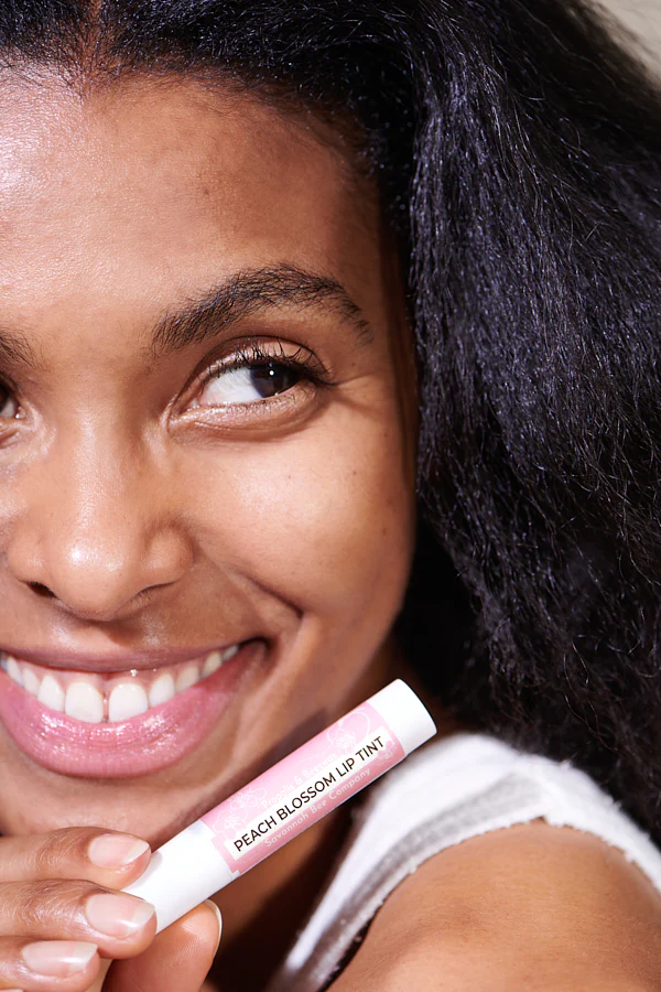 Our Peach Blossom Shimmer is a soft, barely-there pink tint with a hint of shimmer. The Peach Blossom Shimmer has added plant-based flavoring to emulate the fruit for which it is named, but does not contain added fragrances.